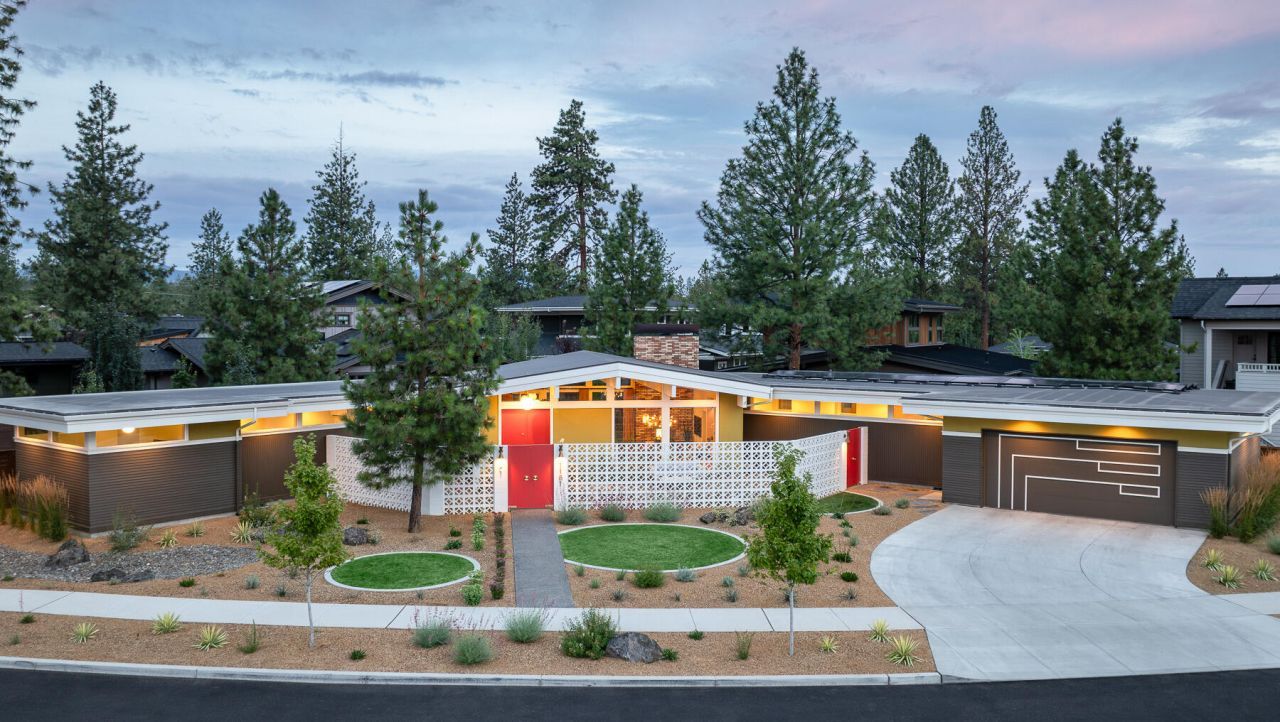 Available on the market for the first time, this unrivalled true-to-style 1960s Mid-Century Modern design custom home gives you the chance to enjoy classic MCM design while living with modern amenities. Inspired by Donald Wexler and Joseph Eichler designs and set in a Central Oregon desertscape, this Salvesen Homes custom build was completed in 2023. If you truly love authentic MCM design, youll appreciate so much of this beautifully crafted home. A fully enclosed breezeblock front courtyard, a dedicated entry with a bricked planter box, and a walnut-lined sunken living room welcomes you and your guests as they step back in time 60 years while retaining all modern luxuries. This certified Net Zero Energy home has floor-to-ceiling windows in the main living areas that seem to bring the outside in. Many period-correct direct references to authentic MCM masterpieces from California and NY