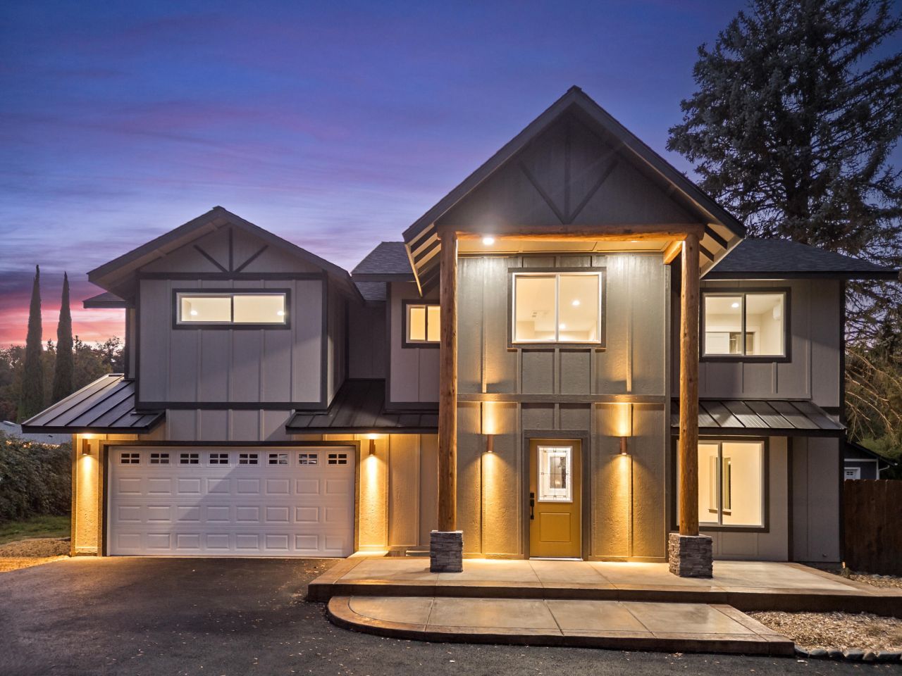 Modern New Construction Home in Grants Pass - Stunning Design Meets Natural BeautyBe the first to own this beautifully built modern home in the heart of Grants Pass! Featuring 3 spacious bedrooms, 2.5 baths, and over 1,700 sq ft of thoughtfully designed living space, this property combines clean contemporary finishes with timeless natural materials.Youll be captivated by the old-growth Douglas Fir pillars that frame the front of the home - a striking architectural detail that sets the tone for the craftsmanship found throughout. Inside, enjoy concrete countertops, open-concept living, beautiful flooring, and tile showers. The primary bedroom offers partial mountain views, providing a peaceful ambiance. Step outside to a fully fenced backyard with gated access - perfect for privacy, pets, or entertaining.