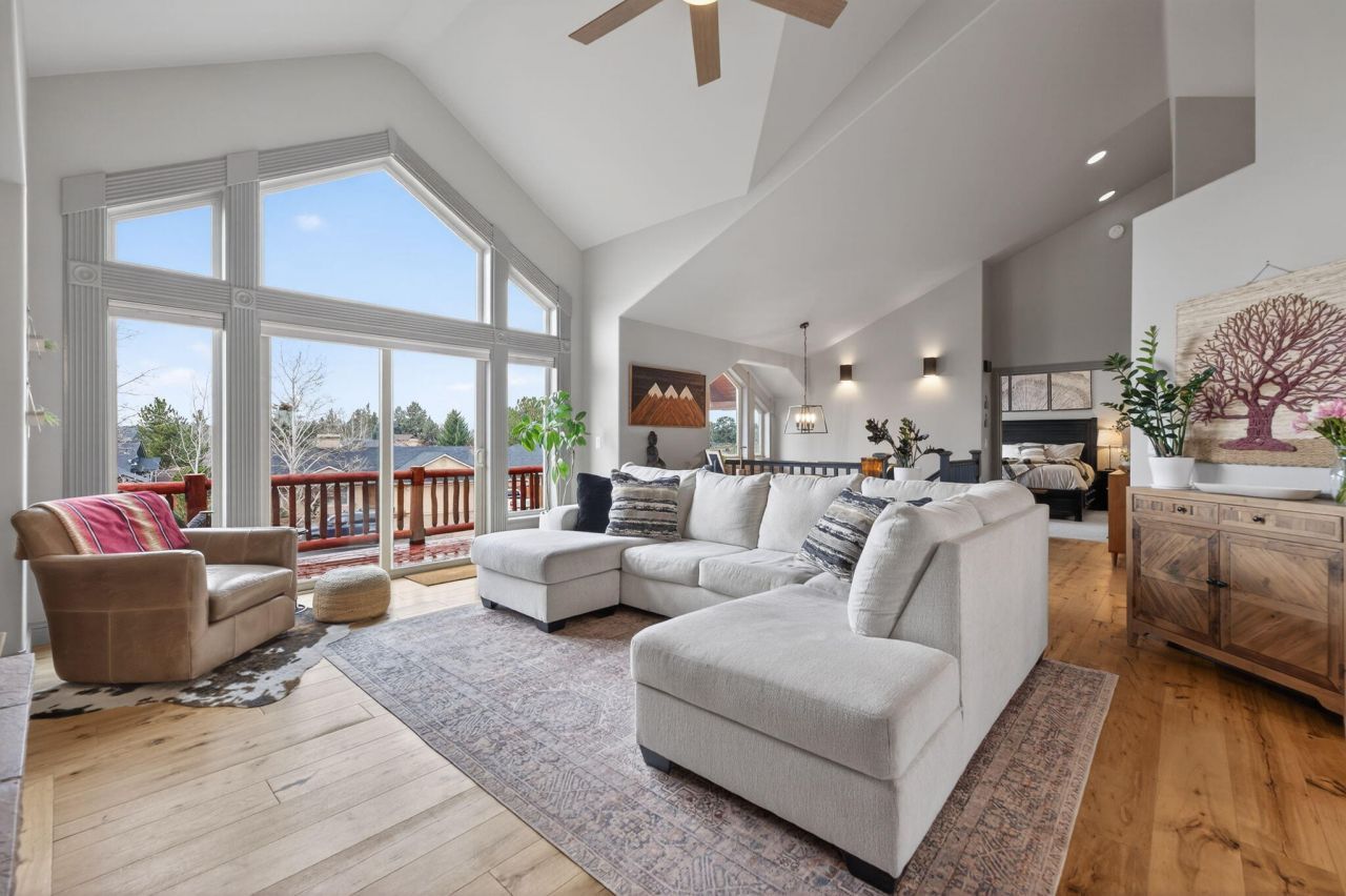 Beautifully maintained home in the private Starwood community. This light-filled 1,761 sq ft home has been recently refreshed with all-new interior paint, solid-core doors, and updated lighting throughout. The main great room features beautiful hardwood floors, vaulted ceilings, and a cozy wood-burning fireplace. The spacious kitchen includes Bosch appliances, solid-surface countertops, and ample room for cooking and gathering. The primary suite is conveniently located on the main level, while two additional bedrooms downstairs offer excellent separation and flexibility. Enjoy mountain views from the front deck and exceptional privacy in back, where the property backs to open common space. The Starwood community offers access to trails, parks, and dog parks, along with gated RV parking for added convenience. This welcoming home combines comfort, style, and a peaceful setting - an ideal opportunity in Starwood.