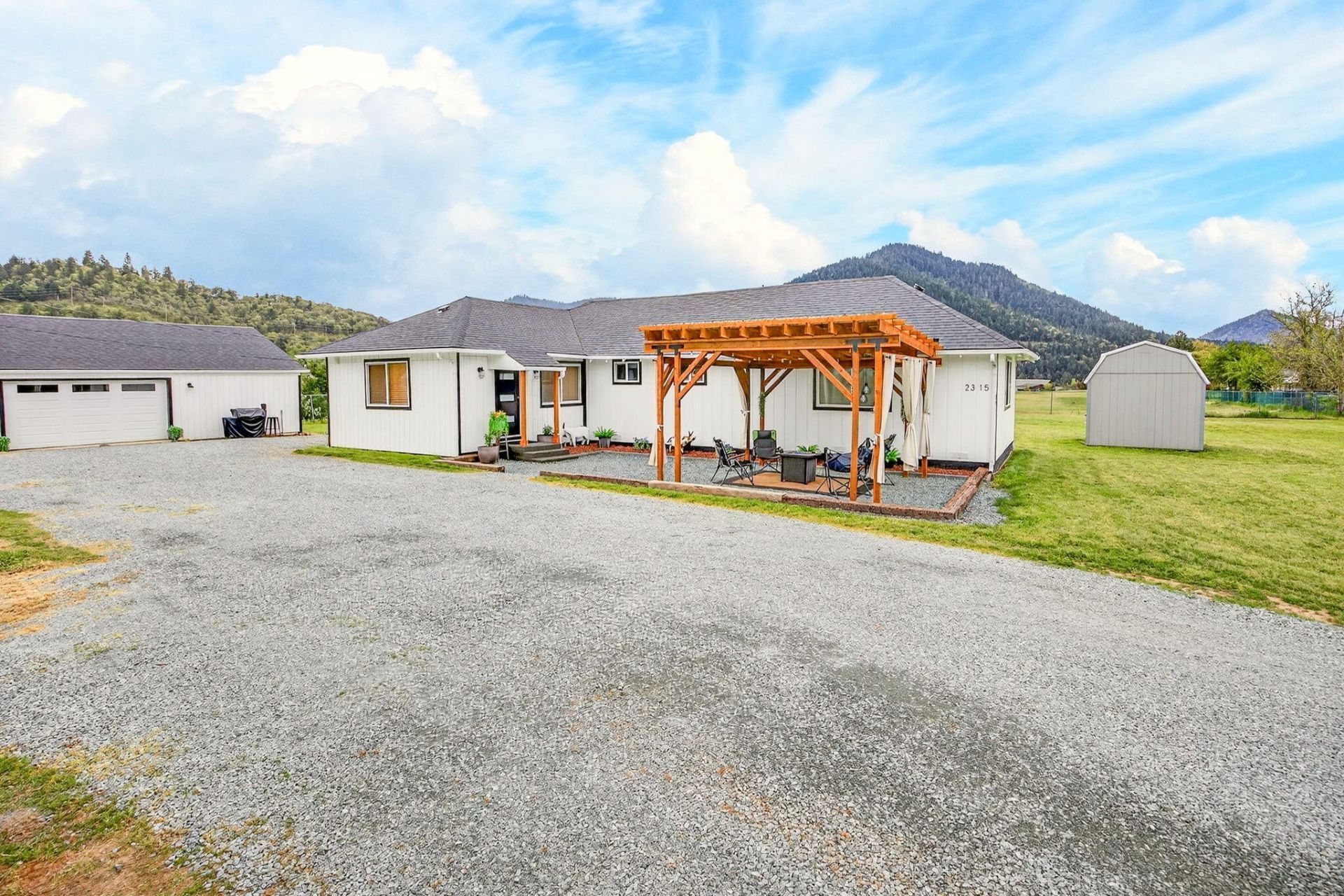 This thoughtfully updated home offers the perfect mix of style, comfort, and functionality--capturing the charm of Southern Oregon living. Unwind beneath the pergola after a long day, or take in stunning mountain views while relaxing poolside in your private backyard oasis. The outdoor space has been fully refreshed by significant grading and leveling for a drought-resistant eco-friendly lawn to be added, and there is irrigation rights to keep everything lush and green. Inside, the kitchen shines with updated appliances, making it easy to prepare meals and entertain. The spacious garage/shop provides plenty of room for hobbies, projects, or extra storage. The in-ground pool is summer-ready with an updated sand filter, while the primary suite features a beautifully designed custom closet youll love. A new storage shed adds even more versatility for tools and equipment. With ample parking for your RV, boat, and more, this property truly has it all--space, upgrades, and lifestyle!