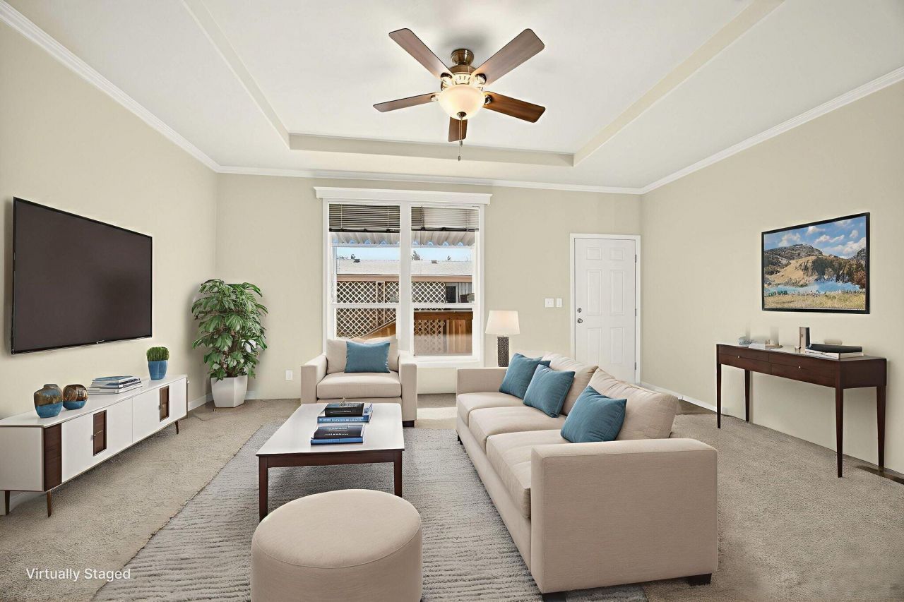 This beautifully designed 2024 manufactured home offers an impressive 1,836 sq ft of comfortable, well planned living. The open layout features generous room sizes and a natural flow that lives more like a site built home. The light filled kitchen is the heart of the home, offering abundant cabinetry, a generous island, and an easy connection to the dining and living areas, making it ideal for everyday living and entertaining. Large windows throughout bring in natural light and create a calm, welcoming atmosphere from the moment you step inside.The primary suite is a true retreat with ample space. The spa-like bathroom offers a generous soaking tub and walk in shower. Everything is new, clean, and move in ready, making this an excellent option for buyers who want new construction without the wait. Located near shopping, dining, medical and access to the Bear Creek Greenway for relaxing walks.