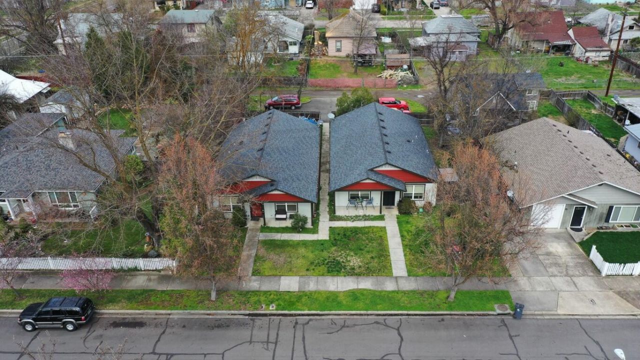 Two Newer Homes on One Big Lot! Great 2004-built single level homes, each with 1,364 square feet, 3 bedrooms, two baths, nice open layouts, great kitchens with lots of cabinetry, vaulted ceilings, thermal pane windows, laundry area, covered front porches and fenced rear-yards. One unit has a side porch for outdoor living. Both have long-term renters, monthly rents for both total $2,975. No Home Owners Association, moderate taxes and individually metered for water, sewer, and electric. The property includes a parking lot with two paved parking spaces for each unit off the alley. City of Medford says there MAY be the possibility of splitting each unit off on its own lot--buyer must verify. This is a solid investment-- rent both, live in one and rent the other, or explore future development potential! Call for a showing today!